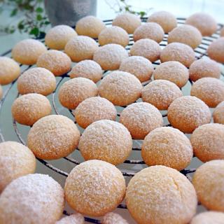 私がUPしている「黒糖と胡麻のスノーボールクッキー」の例でいきますと 小麦粉90gにアーモンドプードル40g サクほろの美味しいスノーボールが出来ますよ 米粉で作るレシピも載せていますので、ご興味があったら覗いてみてください!(^^)!食べきりサイズのサクッと軽いクッキーシリーズ 白い雪の様なコロッと丸いスノーボールクッキー アーモンドプードルをたっぷりと生地に加えたリッチな味わい ほろりと崩れる食感と粉雪のような粉砂糖の甘さが程よい人気のクッキーです *内容量は1袋